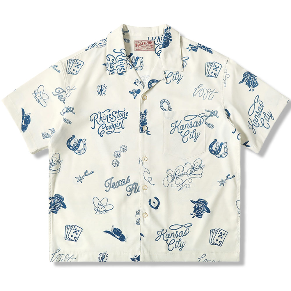 ユニークな臉譜柄開襟アロハシャツ